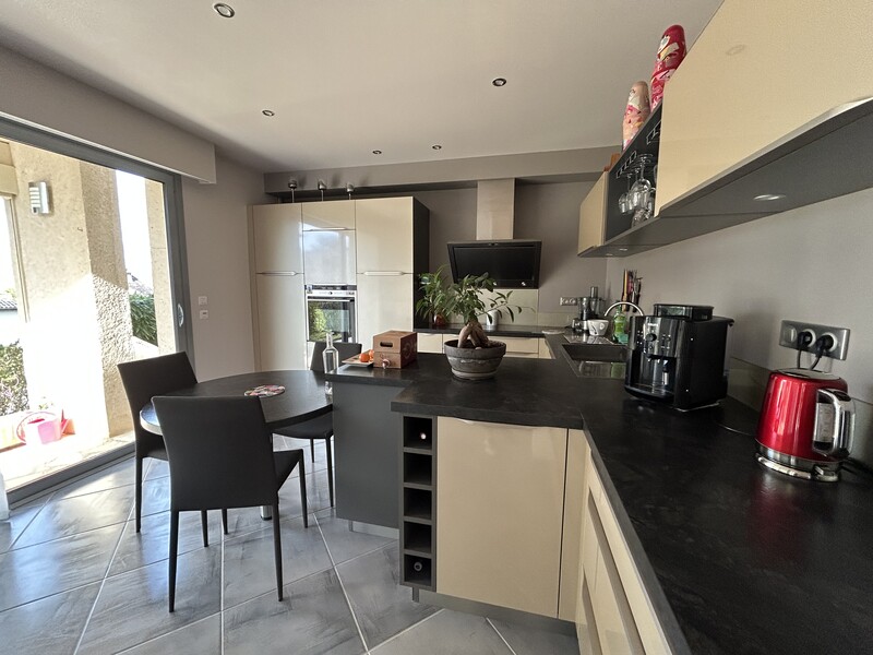 Dans une impasse, dans un quartier résidentiel très calme, cette maison contemporaine est en excellent état général. Elle se compose d'une cuisine meublée équipée et séparée de belle facture, un séjour d'environ 34 m² avec baies vitrées ouvertes sur terrasse couverte et sur la terrasse de la piscine. Un dressing, trois chambres (18, 15 et 11 m²) chacune avec placards (dont une chambre double ; dressing ou salle de jeux d'environ 15 m²). Deux salles d'eau entièrement refaites de belle composition.