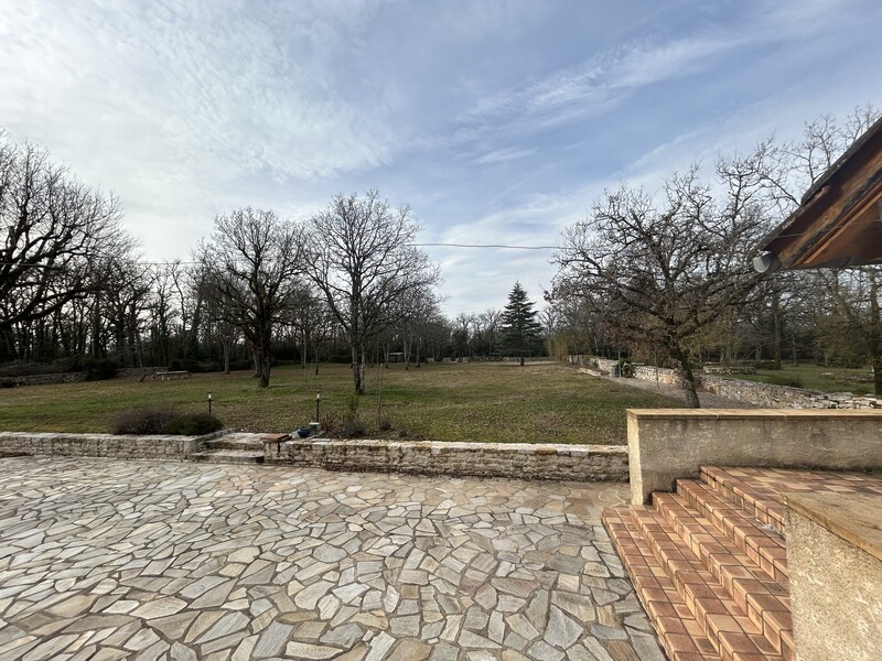 A LOUBRESSAC, maison des années 80 (extension de 1995), élevée sur sous-sol à usage de garages, chaufferie et cave, mais de plain-pied sur le jardin arrière.