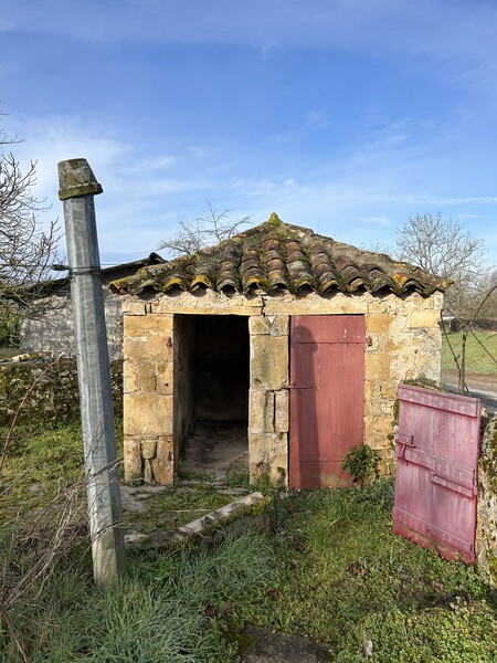 Elle devra faire l'objet d'une restauration complète. Le jardin est entouré de muret en pierre, un garage attenant à la bâtisse, en pierre aussi, et une petite dépendance dans le jardin.