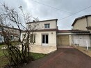 Un garage attenant à la maison, le jardin est cloturé, une terrasse dallée en façade avant.