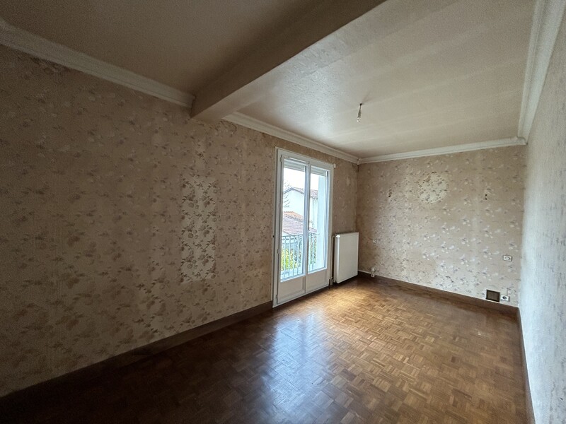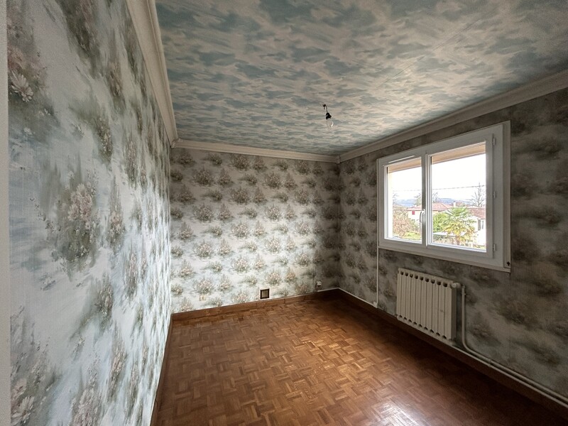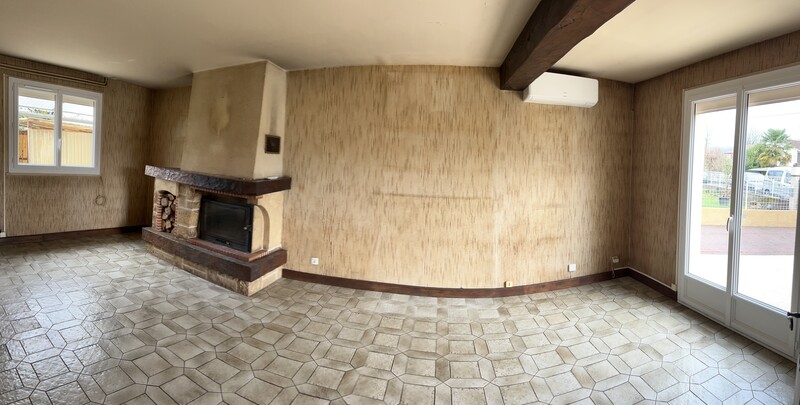 Maison dans quartier résidentiel, mitoyenne sur une face par le garage (avec le garage du voisin), composée en rez-de-chaussée d'un hall d'entrée, une cuisine meublée (bois), un séjour avec cheminée insert et climatisation réversible, un WC, un espace chaufferie (chaudière fioul avec possibilité de se raccorder au chauffage collectif de la commune, installation en place).