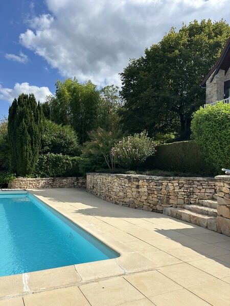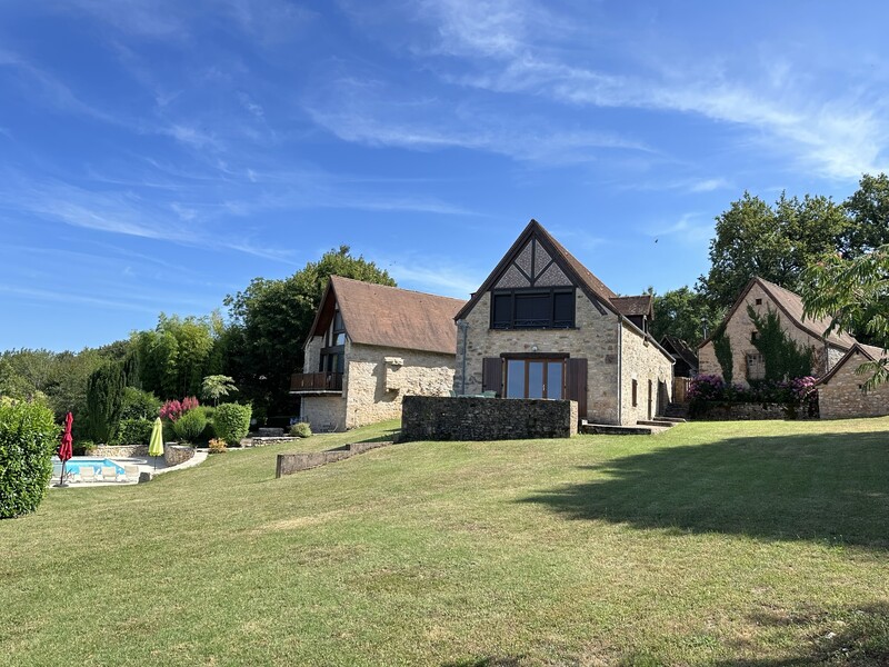 A LOUBRESSAC, avec une vue imprenable sur la vallée et les monts d'Auvergne, cette très belle propriété en pierre se compose de deux maisons, une maison/grangette, un vaste parc arboré avec piscine et deux citernes (récupération des eaux pluviales).
