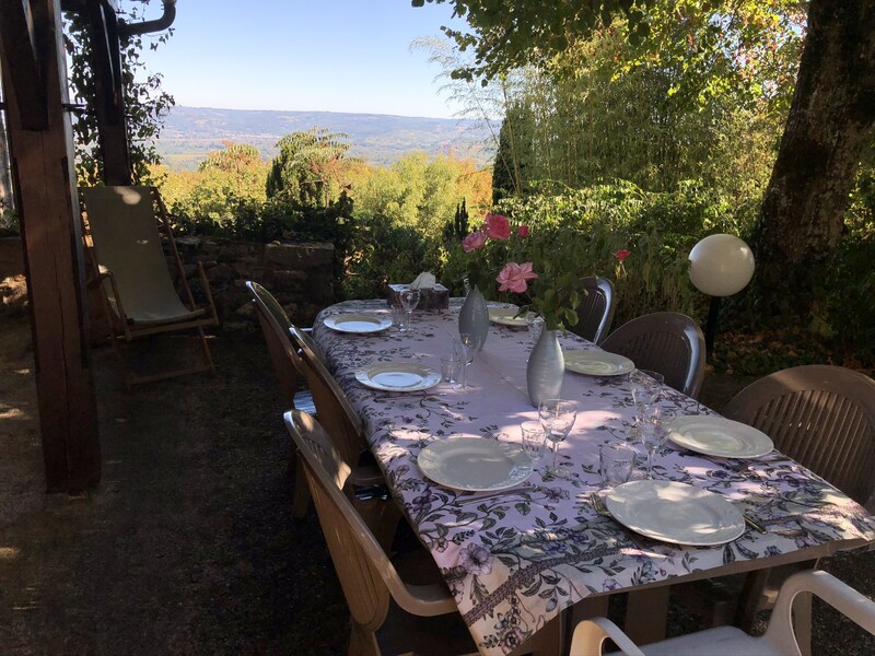 A LOUBRESSAC, avec une vue imprenable sur la vallée et les monts d'Auvergne, cette très belle propriété en pierre se compose  de deux maisons, une maison/grangette, un vaste parc arboré avec piscine et deux citernes (récupération des eaux pluviales).